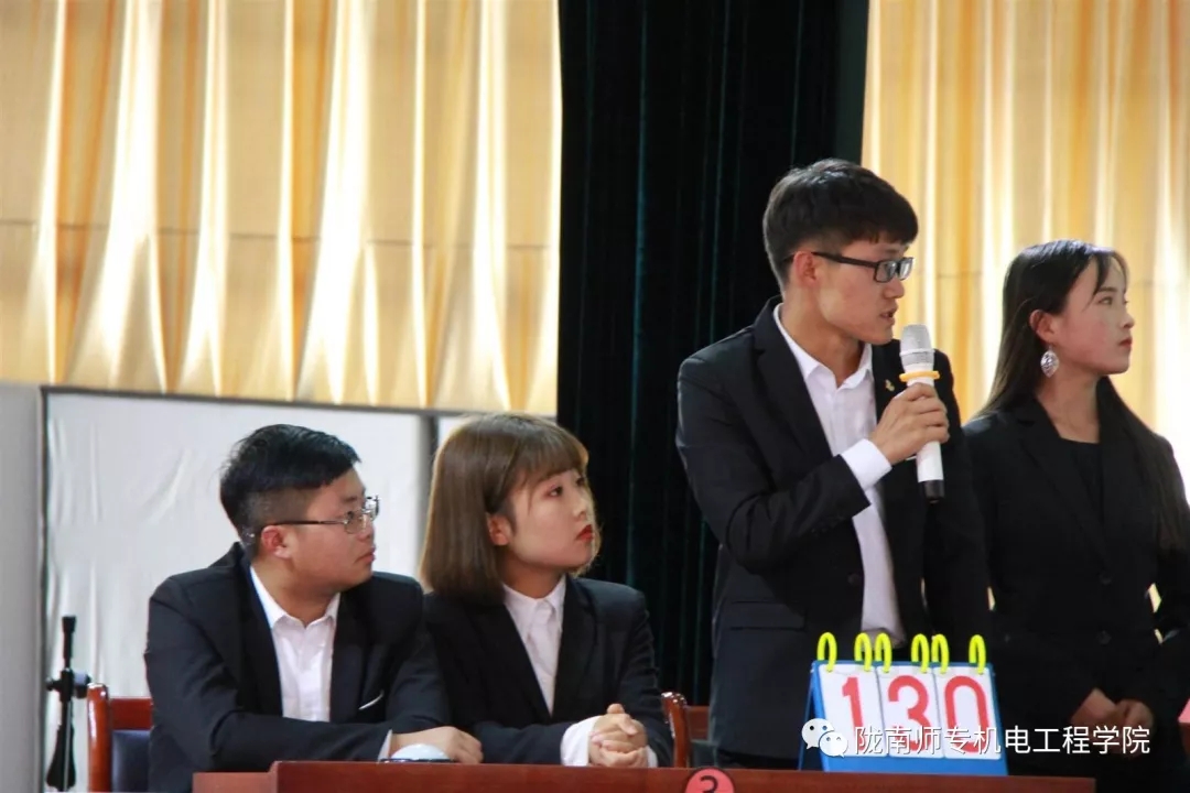 必答题过后,激动人心的抢答题来了,各个代表队眼疾手快,在主持人的一声令下各个代表队将手中的抢答器按下,获得答题权力,迅速起身作答。最后,选手们经过激烈的角逐,17级汽修班力压群雄获得了第一名。