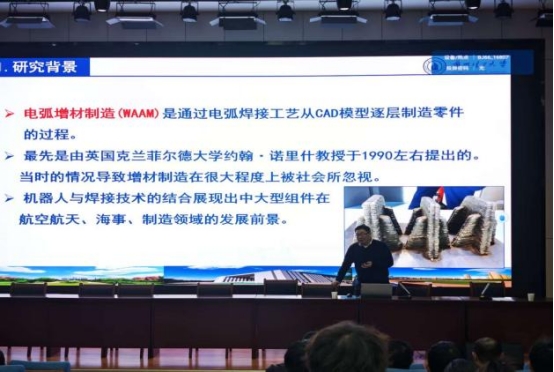报告中,黄健康教授紧扣这两大核心目标,以钛合金增材制造为典型案例,清晰拆解了技术突破的完整逻辑体系,为在场师生呈现了一场兼具理论深度与实践价值的学术盛宴。在“控形”技术突破方面,黄教授重点阐释了机器人路径规划、视觉传感与闭环控制技术的协同应用机制。针对“控性”这一关键痛点,黄教授详解了双丝交叉电弧、粉末与气体原位强化等创新技术。团队通过优化双丝电弧参数,实现不同成分材料的精准熔合,同时在成型过程中通入强化气体并加入纳米粉末,使梯度功能钛合金的显微硬度提升35%,抗压强度和耐磨性分别提高28%和42%,成功实现材料“组织-结构-性能”的协同优化。这些技术成果已在航空航天零部件、高端医疗器件等领域初步应用,展现出广阔的产业化前景。