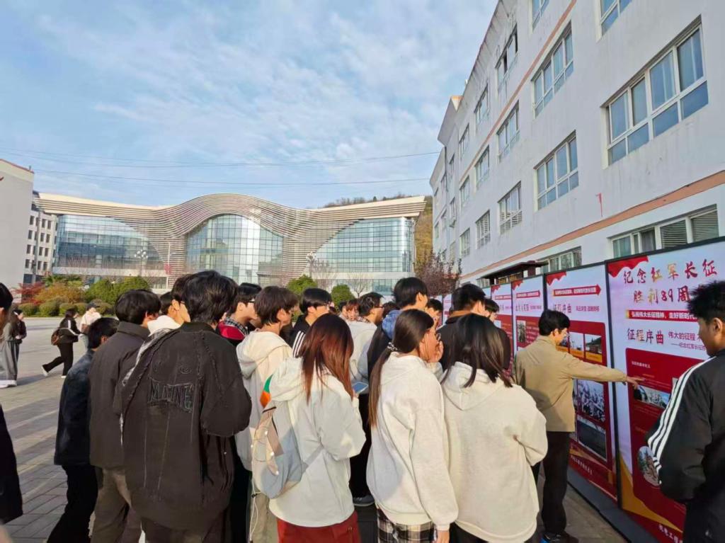 本次展览是以红军长征时间顺序为主线,以红军长征中的每一个真实鲜活的故事为例,旨在通过回顾光辉历史,激励全院师生在新征程上展现新作为。一幅幅珍贵的历史图片和详实的文字说明,系统梳理了从战略转移到胜利会师的壮阔历程,重点突出了红军长征伟大历史意义和红军将士不畏艰险、浴血奋战的英雄气概,吸引了众多师生驻足观看,为师生打造了一堂生动而深刻的“大思政课”。