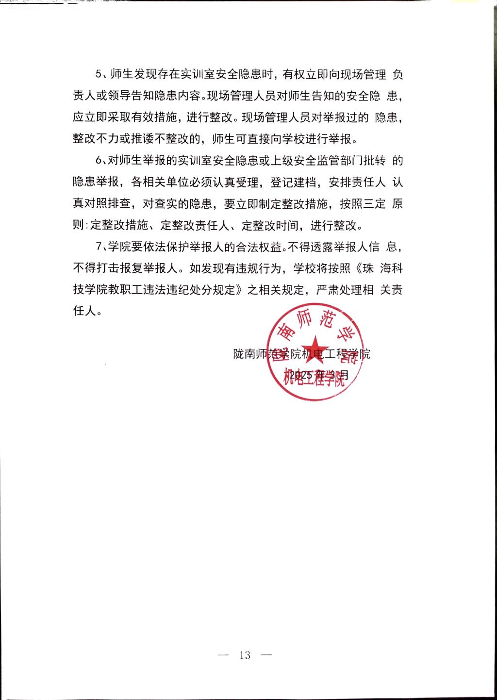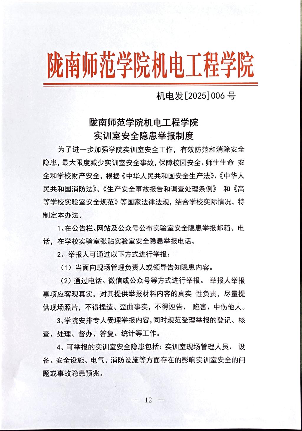 陇南师范学院机电工程学院实训室安全隐患举报制度 机电发[2025]006号.pdf