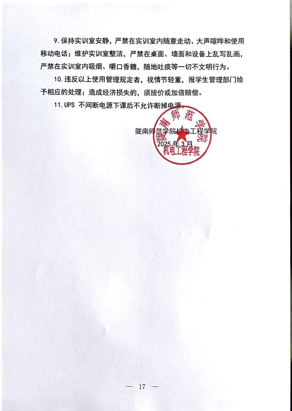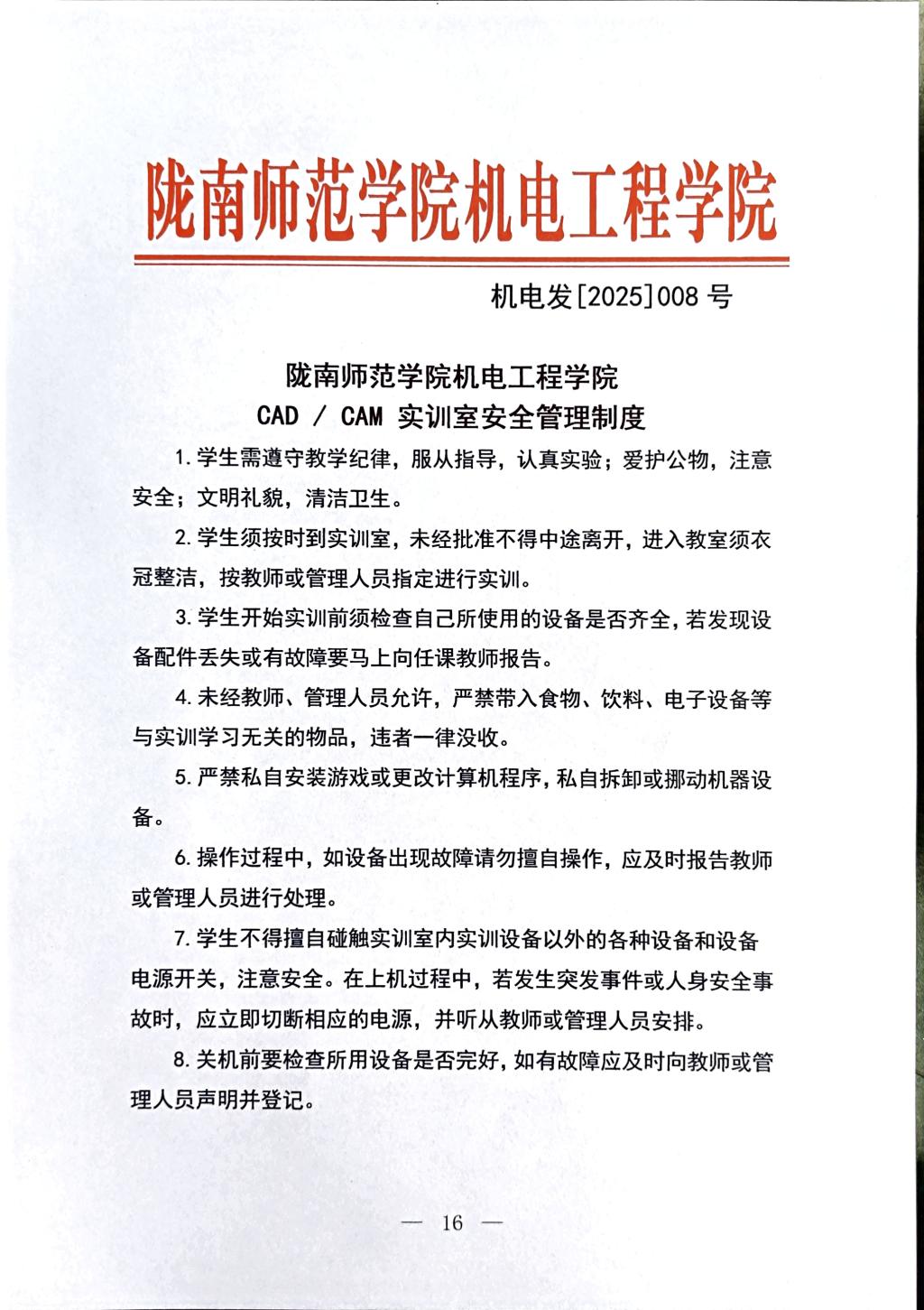 陇南师范学院机电工程学院CAD CAM实训室安全管理制度 机电发[2025]008号.pdf