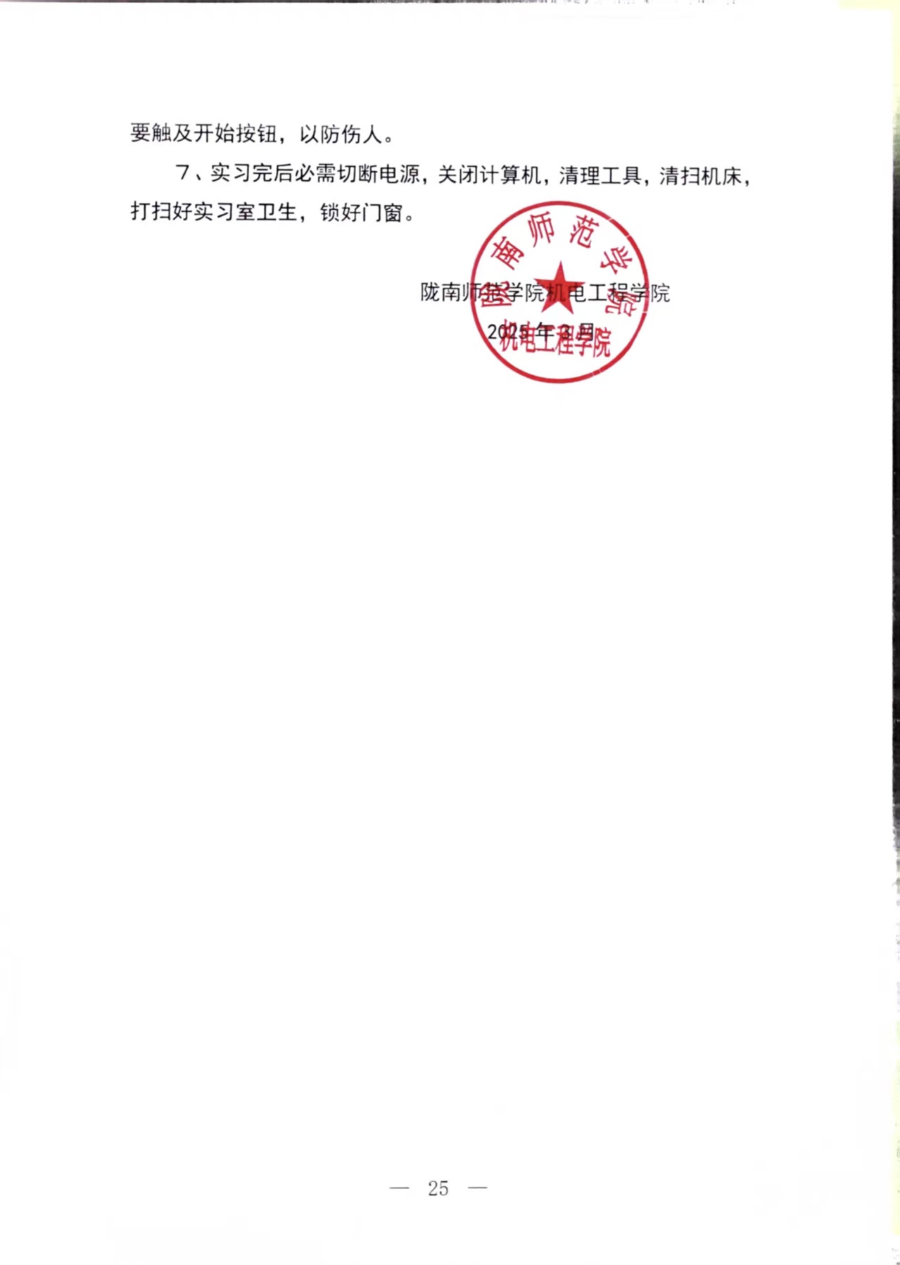 陇南师范学院机电工程学院数控机床实训室使用管理制度 机电发[2025]012号.pdf