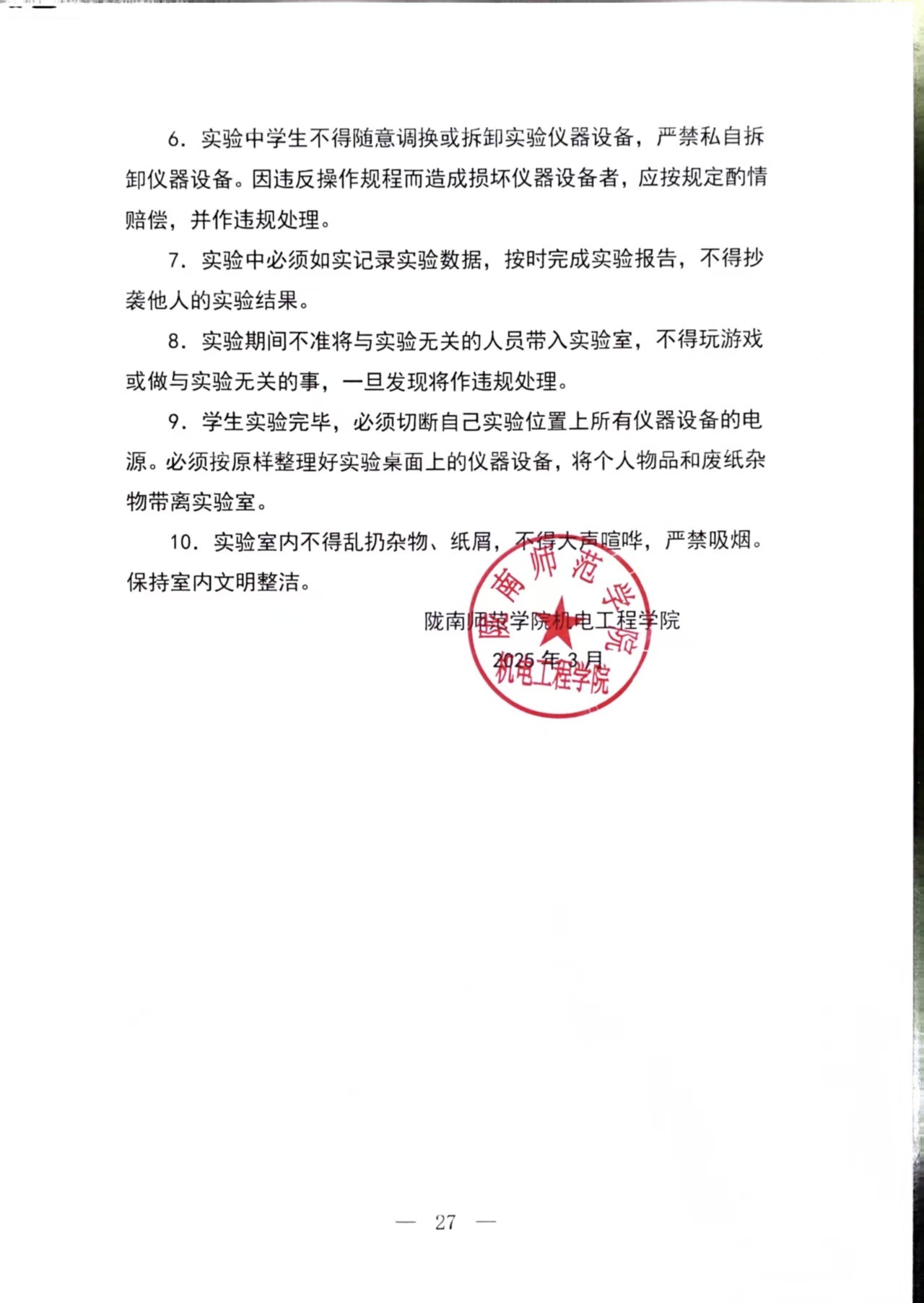陇南师范学院机电工程学院全自动生产线实训室管理制度 机电发[2025]013号.pdf