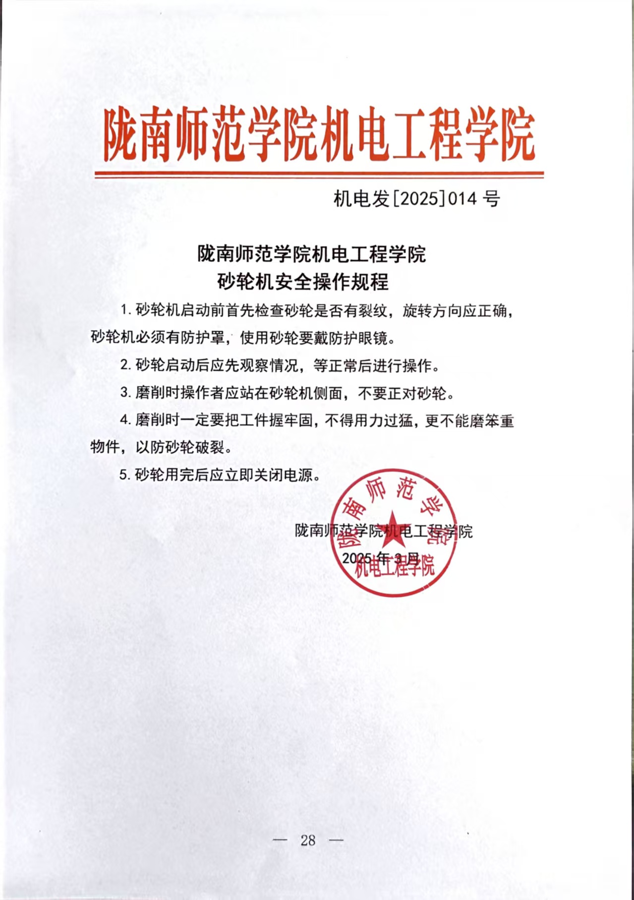 陇南师范学院机电工程学院磨砂机安全操作规程 机电发[2025]014号.pdf
