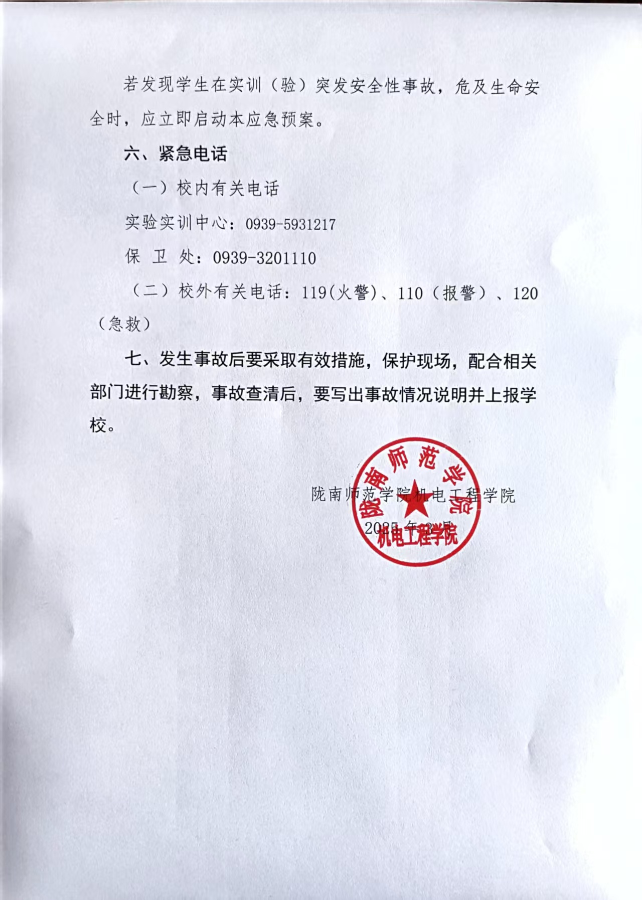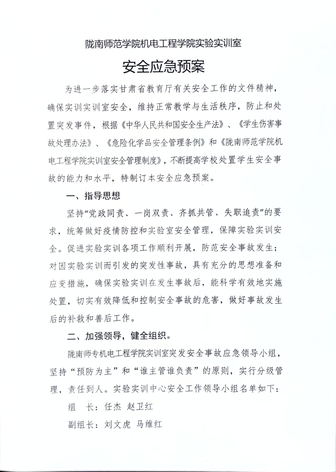 陇南师范学院机电工程学院实验实训室安全应急预案.pdf
